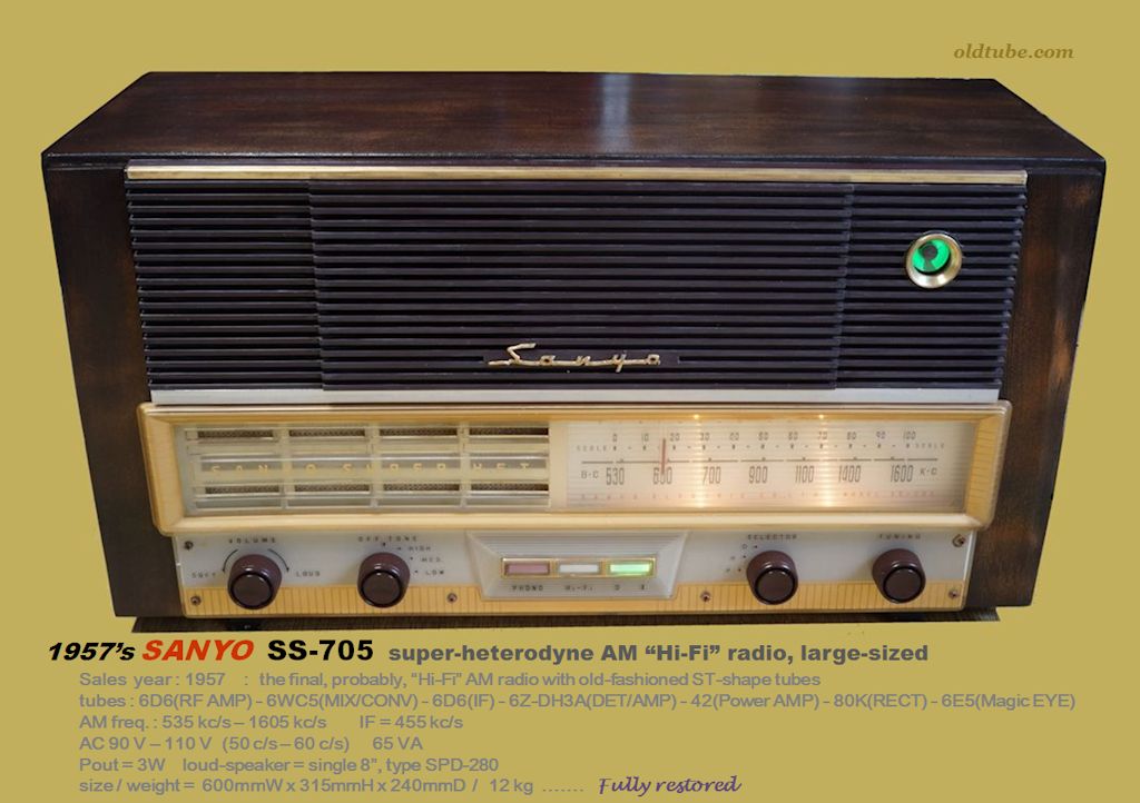 1957 Sanyo SS-705 super-heterodyne 7-tubes AM "Hi-Fi" radio, fully-restored