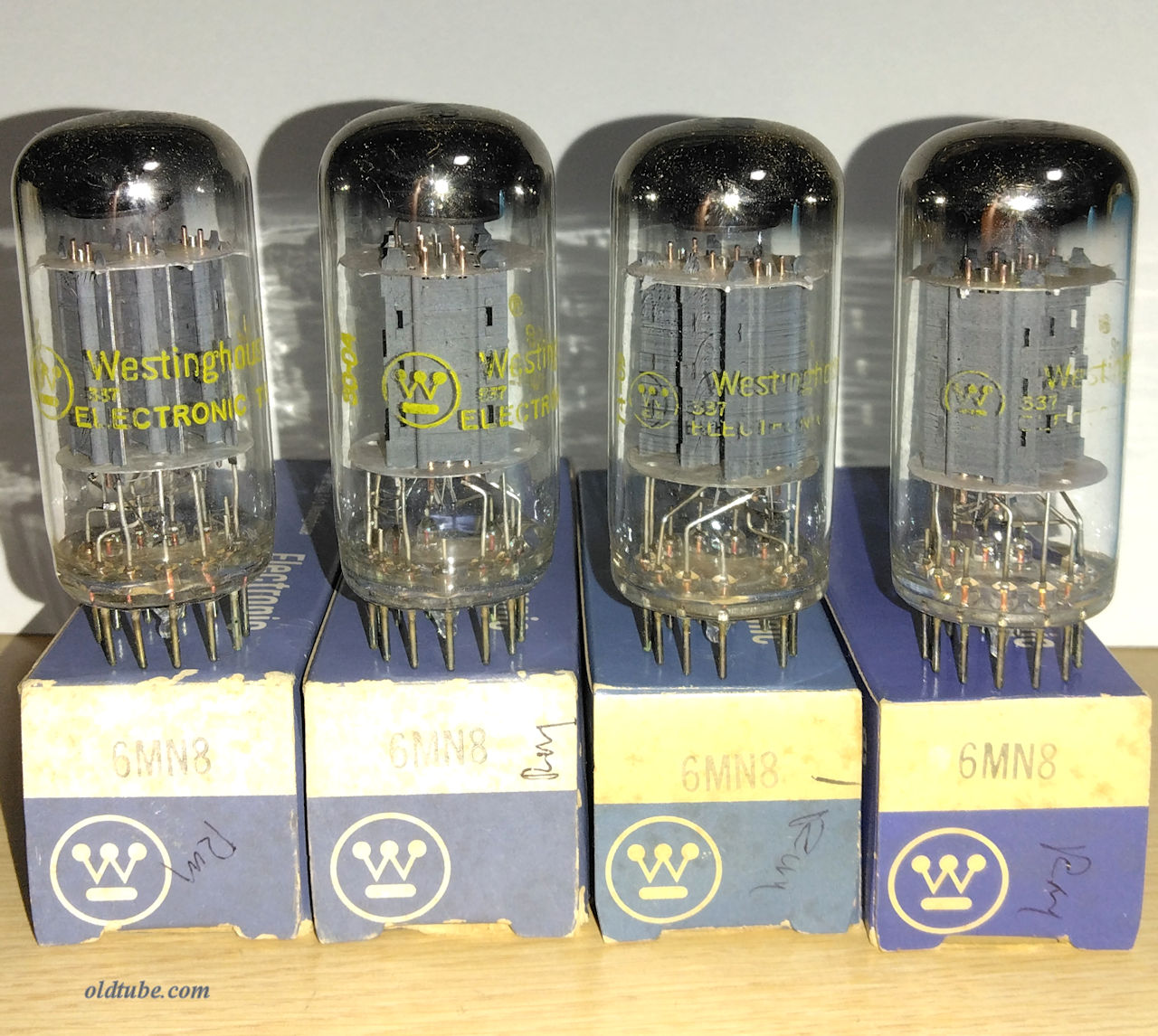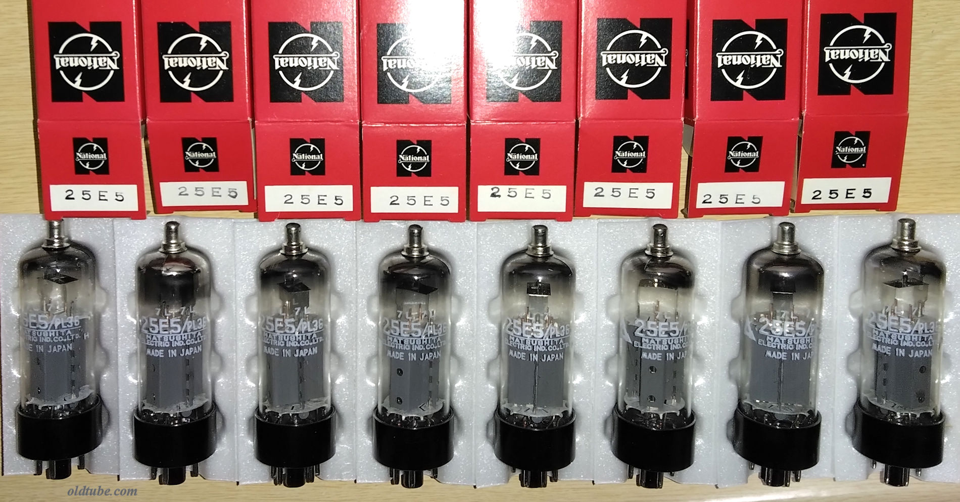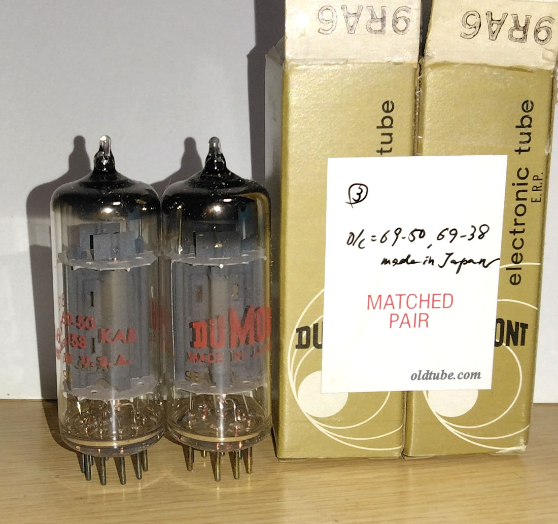 01A/201A/301A/501A =Detector Triode Amplifier = Ef/If=5V/0.25A Epmax=135V op :Ep=90V Ec=-4.5V Ip=2.5mA rp=11kΩ gm=725μmhos μ=8 op :Ep=135V Ec=-9V Ip=3mA rp=10kΩ gm=800μmhos μ=8 (参考 : Ep-Ip特性) also see similar types : DeForest DV2, DV5, NothernElectric R-221D/DX, Western Electric 235D 26) C-301A, CX-301-A-globe Cunningham ¥offer NIB * 6pcs=C-301A : ShortPins/Brass-base, 1pc=C-301A : ShortPins/BlackMoldBase w/original solid boxes * 17pcs=CX-301A : later-long-pins/Mold-base w/original solid boxes * 2pcs = CX-301A :later-long-pins BlackMold-base with very-ragged original boxes 0) C-301A-globe Cunnghm ¥- used gm=24,24/18min ShortPins 0) C-301A-globe Cunningham ¥- used BrassBase 690μmho(Ec=-13V) ShortPins 1) C-301A-globe Cunningham ¥6900 used BrassBase 530μmho(Ec=-13V) ShortPins 2) C-301A-globe Cunningham ¥7900 used BrassBase 24,30/18min(TV-7B/U) ShortPins 0) C-301A-globe Cunningham ¥7500 used BlackMoldBase 880μmho(Ec=-14V) ShortPins 1) C-301A-globe Cunningham ¥7300 used BlackMoldBase 790μmho(Ec=-13V) ShortPins 1) C-301A-globe Cunningham ¥7300 used BlackMoldBase 750μmho(Ec=-14V) ShortPins 1) C-301A-globe Cunningham ¥6800 used BlackMoldBase 30/18min ShortPins @@ 1) C-301A-globe Cunningham ¥5300 used BlackMoldBase 670μmho(Ec=-13V) ShortPins 1) C-301A-globe Cunningham ¥3900 used BlackMoldBase 510μmho(Ec=-13V) ShortPins 0) C-301A-globe Cunningham ¥1000 used BlackMoldBase SHORT[DISPLAY] Filaments=OK ShortPins 0) UV-201A-globe Radiotron ¥- used? BrassBase ShortPins(sQn) 0) UV-201A-globe Radiotron ¥- used BlkMoldBase ShortPins(qD) 1) UV-01A-globe GoldSeal ¥6000 used BlkMoldBase 27/18min ShortPins @@ 0) UV-201A-globe RCA Radiotron ¥- used BlkMoldBase ShortPins 850μmho(Ec=-13V) ChipInGlass 1) UV-201A-globe RCA Radiotron ¥7700 used BlkMoldBase ShortPins 1000μmho(Ec=-14V) 1) UV-201A-globe RCA Radiotron ¥7700 used BlkMoldBase ShortPins 940μmho(Ec=-14V) 1) UV-201A-globe RCA Radiotron ¥7700 used BlkMoldBase ShortPins 930μmho(Ec=-13V) 1) UV-201A-globe RCA Radiotron ¥6800 used BlkMoldBase ShortPins 700μmho(Ec=-14V) 1) UV-201A-globe RCA Radiotron ¥4200 used BlkMoldBase ShortPins 550μmho(Ec=-13V) 1) UV-201A-globe RCA Radiotron ¥6900 used BlkMoldBase ShortPins 770μmho(Ec=-13V) 1) UV-201A-globe RCA Radiotron ¥6900 used BlkMoldBase ShortPins 770μmho(Ec=-13V) 1) UV-201A-globe RCA Radiotron ¥6900 used BlkMoldBase ShortPins 770μmho(Ec=-13V) 1) UV-201A-globe RCA Radiotron ¥6700 used BlkMoldBase ShortPins 720μmho(Ec=-13V) 0) UV-201-globe Radiotron ¥- used BrassBase ShortPins [DISPLAY] 0) UV-201-globe Radiotron ¥- used BrassBase VeryLowEmission ShortPins[DISPLAY] 1) UV-201A-globe ? ¥2000 used BrassBase ShortPins [DISPLAY] 0) UV-201-globe Radiotron ¥- used BlkMoldBase ShortPins[DISPLAY]@@ 1) UV-201-globe Stewart Werner ¥1500 used BlkMoldBase GoldPaintEngravedLogo ShortPins[DISPLAY]@@ 2) UV-201A-globe Ureco ¥1500 used BlkMoldBase ShortPins[DISPLAY]@@ 0) UV-201A-globe Radiotron ¥- used BlkMoldBase ShortPins[DISPLAY] 1) D-01A DeForest ¥12000 used UX-IsolantiteBase TippedTop gm=500umhp(Ec=-13V) 1) A-201 Volutron ¥12000 used UV-BrassBase RoundTopStraightGlass ShortPins gm=700umhp(Ec=-13V) 1) A-201 Volutron ¥12000 used UV-BrassBase RoundTopStraightGlass ShortPins gm=670umhp(Ec=-13V) 1) A-201 Volutron ¥11000 used UV-BrassBase RoundTopStraightGlass ShortPins gm=560umhp(Ec=-13V) 1) X-201A-globe Vesta ¥5000 used VeryThickMoldBase LongPins 740μmho(Ec=-13V) 1) UV-201A-globe ? ¥6300 used ThickReddishBrownMoldBase ShortPins 900μmho(Ec=-14V) Perryman RH201A箱 0) CX-301A Cunnghm ¥- NIB ragged-boxes (quad) 0) CX-301A-globe Cunnghm ¥- NIB(T) 1) CX-301A-globe Cunnghm ¥3800 used 800μmho(Ec=-13V) 1) CX-301A-globe Cunnghm ¥3500 used 740μmho(Ec=-13V) 1) CX-301A-globe Cunnghm ¥3200 used 710μmho(Ec=-13V) 1) CX-301A-globe Cunnghm ¥3200 used 700μmho(Ec=-13V) 1) CX-301A-globe Cunnghm ¥3100 used 670μmho(Ec=-13V) glassが白澄んでいる 0) CX-301A Cunnghm ¥- used(hhz2v4gy) 1) CX-301A-globe Cunnghm ¥3100 used 32/18min glassがベースに対してやや斜めになっている。 1) CX-301A-globe Cunnghm ¥2900 used 28/18min glassが白澄んでいる。 1) CX-301A-globe Cunnghm ¥2100 used 22/18min 1) CX-301A-globe Cunnghm ¥2100 used 20/18min @@ 0) UX-201A-globe RCA ¥- NOS? STRONG Perryman RH201A箱(sT) 0) UX-201A-globe RCA ¥- used(hhz1v5gy) 0) UX-201A-globe RCA-Radiotron ¥3800 used gm=920μmho(Ec=-13V) TallBase 1) UX-201A-globe RCA-Radiotron ¥3100 used gm=730μmho(Ec=-13V) 1) UX-201A-globe RCA ¥2100 used gm=20(TV-7) 0) SX-201A-globe Syl ¥- used? 0) 501A DeForest ¥- used 32,33/18min(D) 1) 401A DeForest ¥5300 NIB 26/18min VeryRaggedBox 1) 401A DeForest ¥5300 NOS? 34/18min 1) 401A DeForest ¥4600 NOS? 28/18min 1) 501A DeForest ¥4600 used 28/18min 1) UX-201A-globe KenRad ¥2000 used gm=470μmho(Ec=-13V) 1) 201A-globe DIATRON ¥3500 used gm=32/18min 1) 201A-globe Powertone ¥3300 used gm=730μmho(Ec=-13V) 1) UX-201A-globe WORD? ¥3300 used gm=740μmho(Ec=-14V) 0) 01A-globe ByHeck ¥2800 used gm=630μmho(Ec=-13V) 0) 201A-21x-globe Silvertone ¥3500 used gm=30/18min 1) UX-201A-globe Neutron ¥2500 used gm=800μmho/475min(on KS-15750-L1) 1) UX-201A-globe BESTO ¥2500 used gm=775μmho/475min(on KS-15750-L1) 1) ER201A-globe EvereadyRaytheon ¥3800 used gm=740μmho(Ec=-13V) engraved 1) ER201A-globe EvereadyRaytheon ¥3800 used gm=690μmho(Ec=-13V) engraved 1) 01A Ray ¥7900 LikeNew 4-pillar ST gm=820μmho(Ec=-13V) 1) 01A-ST RCA ¥4700 NIB 1) 01A-ST Silvertone ¥4300 NIB 1) 01A-ST Silvertone ¥4,300 NIB 5) 01A-ST Meteor ¥4300 NIB RaggedBox 1) 01A-ST Wards ¥4300 NIB RaggedBox 1) 01A-ST GE ¥2700 used gm=775μmho(Ec=-13V) 1) 01A-ST Panama ¥2700 used engraved gm=730/μmho(Ec=-13V)