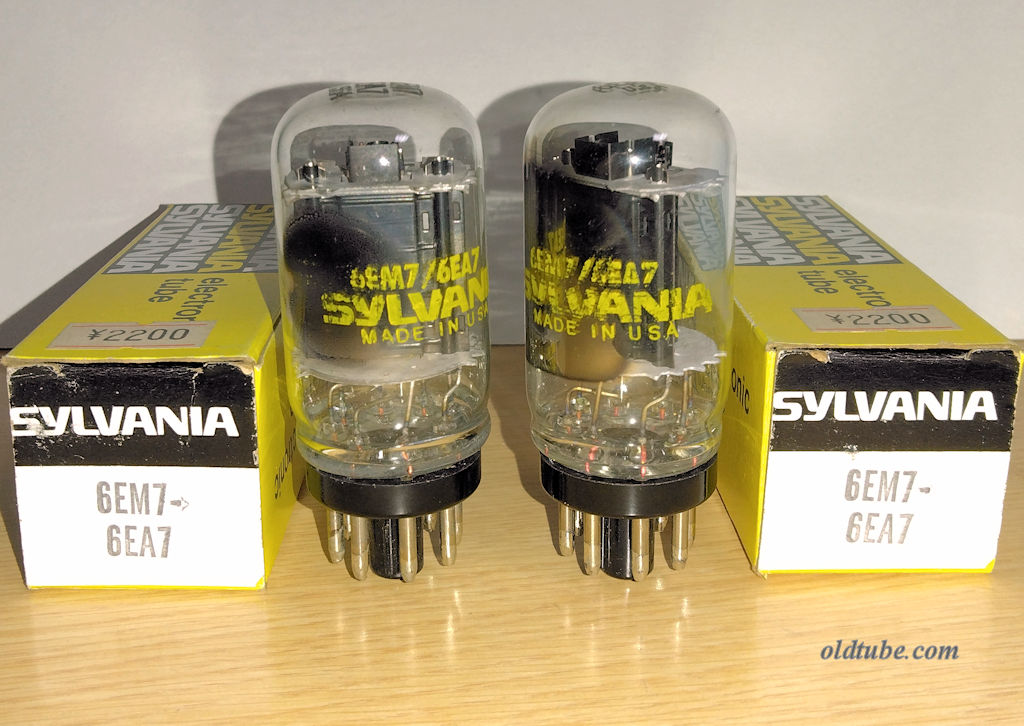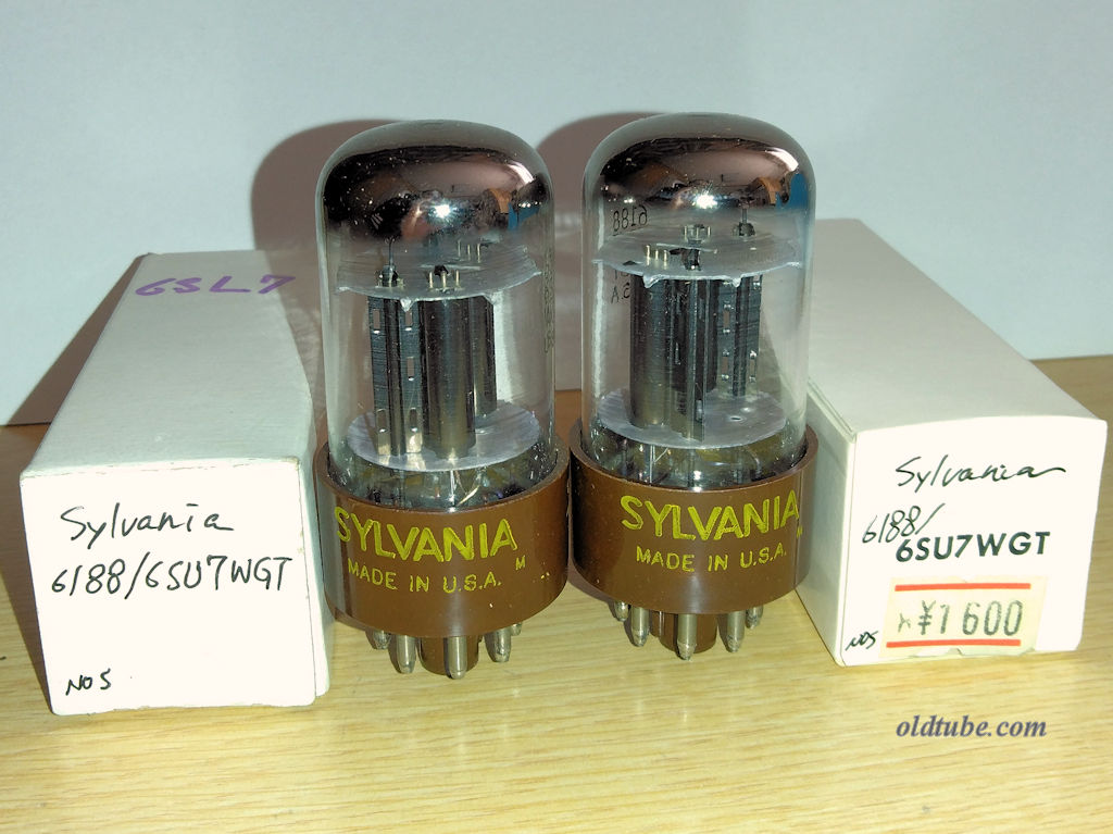VT-48(see 41) =power pentode= (EIA/6B - UZ 6pin) Eh/Ih=6.3V/0.4A Ppmax=8.5W Epmax=315V Pc2max=2.8W Ec2max=285V Ec1max=+0V Ehkmax=90V VT-48 = Military type of #41 electrically identical with 6K6GT(octal), 7B5(loktal). 6) VT-48/#41 Sylvania ¥1700 NIB MB ST very-ragged boxes, Top View 1) VT-48/#41 Sylvania ¥1900 lightly-used WB
