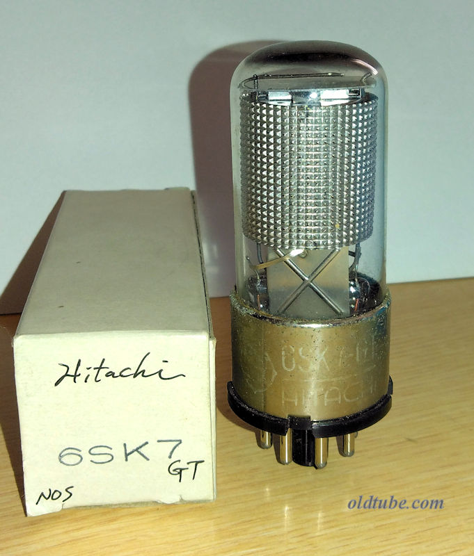 1AB6(=DK96) =filamentary Pentagrid Converter= (EIA/7DH - miniature) Ef/If=1.4V/0.025A Rg3max=3MΩ Rg1max=100kΩ Ppmax=0.15W Epmax=90V Pc4max=0.03W Ec4max=90V Pc2max=0.1W Ec2max=60V Ikmax=2.6mA op: Ep=64V Ec4=64V Ec3=0V Ec2=35V Ic2=1.7mA gm21=0.6mS μg2g1=7.5 pins: 1(F-)-2(P)-3(G2)-4(G1)-5(G4)-6(G3)-7(F+,G5) 2) 1AB6/DK96 Matsushita ¥500 lightly-used WB