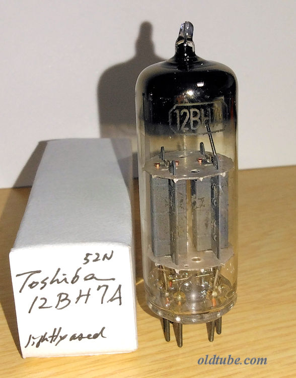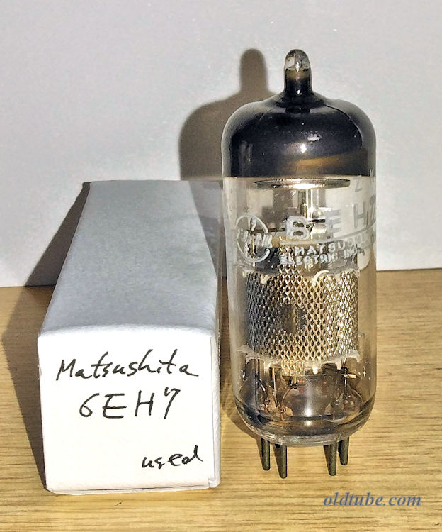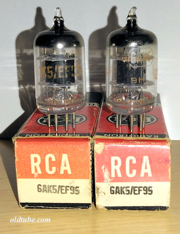 1AH5(=DAF96) =filamentary Diode, AF Pentode= (EIA/7DJ - miniature) Ef/If=1.4V/0.025A *pentode Ppmax=0.03W Epmax=90V Ec2max=0.01W Ec2max=90V Ikmax=0.25mA Rg1max=10MΩ op: Ep_supply=64V Rg2=3.3MΩ Rg1=10MΩ Rload=2MΩ Ip=32μA Ic2= 9μA μ=52 Dtot=2.5%(@Eo=5V) op: Ep_supply=85V Rg2=3.3MΩ Rg1=10MΩ Rload=2MΩ Ip=50μA Ic2=15μA μ=62 Dtot=1.2%(@Eo=5V) *diode PIV=100V Ipmax=0.2mA/1.2mApeak pins: 1(G3,F-)-2(NC)-3(Pd)-4(G2)-5(P)-6(G1)-7(F+) 2) 1AH5/DAF96 Matsushita ¥500 like-new WB 2) 1AH5/DAF96 Matsushita ¥500 lightly-used WB