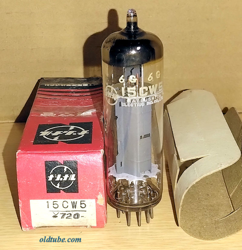 Eh/Ih=12.6V/0.425A(6.3V/0.85A) Fmax=500MHz Ppmax=W Epmax=V Pc2max=W Ec2max=V Ipmax=mA Ehkmax=±V op: Ep=300V Ec2=200V Ec1=-14V Ip=2x25mA Ic2=1.5mA μg2g1=9.2-typ op: Ep=250V Ic1=4.5mAdc Rc1=16kΩ Ipmax=120mAdc f=460MHz Pout=11W size: 30mmΦ x 81mm, approx. pins: 1(1G1)-2(K,G3)-3(2G1)-4(H)-5(H)-6(1P)-7(G2)-8(2P)-9(HCT) lower-rating noval 500MHz twin power tetrode : 6939, QQE02/5, 7699 8) 1B15 NEC ¥offer NOS Dome-Top, plastic-bag sealed, WB 7) 1B15 NEC ¥offer NOS Dome-Top, WB 0) 1B15 NEC ¥- NIB Dome-Top type(Bottom-exhaustion), very-ragged boxes (hyyvix) 10) 1B15 Hitachi ¥offer NIB Tip-Top (hyyarss) 2) 1B15 Hitachi ¥offer NIB Tip-Top 0) 1B15 NEC ¥- used-lightly 2) 1B15 Hitachi ¥offer like-new Tip-Top, WB 0) 1B15 Hitachi ¥- used