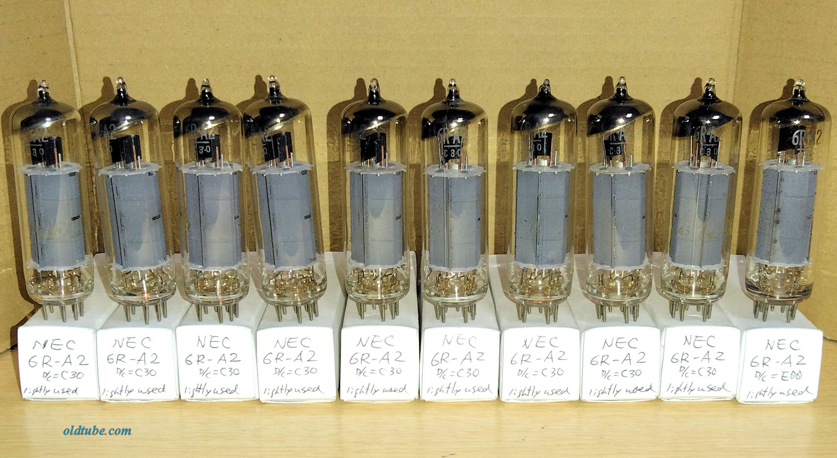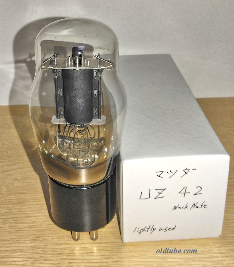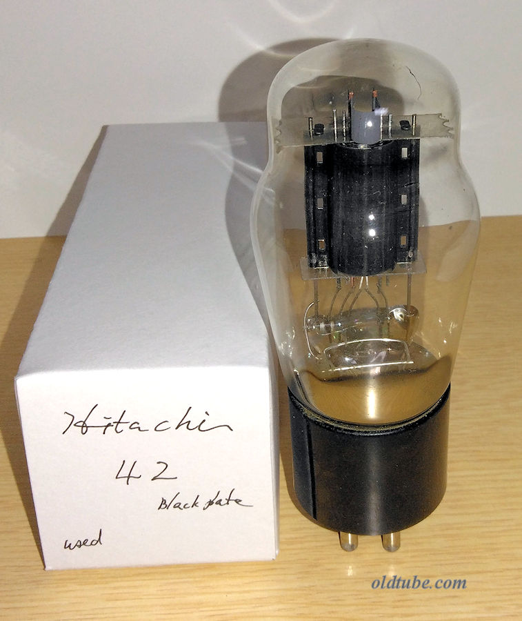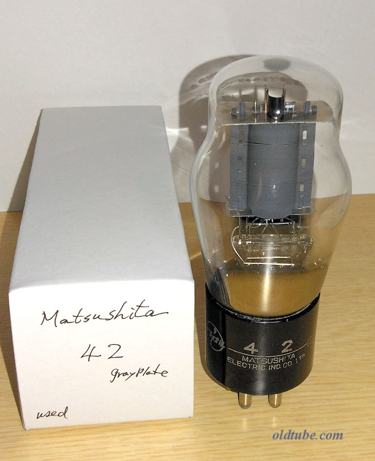 01A/201A/301A/501A =Detector Triode Amplifier = Ef/If=5V/0.25A Epmax=135V op :Ep=90V Ec=-4.5V Ip=2.5mA rp=11kΩ gm=725μmhos μ=8 op :Ep=135V Ec=-9V Ip=3mA rp=10kΩ gm=800μmhos μ=8 (参考 : Ep-Ip特性) also see similar types : DeForest DV2, DV5, NothernElectric R-221D/DX, Western Electric 235D 26) C-301A, CX-301-A-globe Cunningham ¥offer NIB * 6pcs=C-301A : ShortPins/Brass-base, 1pc=C-301A : ShortPins/BlackMoldBase w/original solid boxes * 17pcs=CX-301A : later-long-pins/Mold-base w/original solid boxes * 2pcs = CX-301A :later-long-pins BlackMold-base with very-ragged original boxes 0) C-301A-globe Cunnghm ¥- used gm=24,24/18min ShortPins 0) C-301A-globe Cunningham ¥- used BrassBase 690μmho(Ec=-13V) ShortPins 1) C-301A-globe Cunningham ¥6900 used BrassBase 530μmho(Ec=-13V) ShortPins 2) C-301A-globe Cunningham ¥7900 used BrassBase 24,30/18min(TV-7B/U) ShortPins 0) C-301A-globe Cunningham ¥7500 used BlackMoldBase 880μmho(Ec=-14V) ShortPins 1) C-301A-globe Cunningham ¥7300 used BlackMoldBase 790μmho(Ec=-13V) ShortPins 1) C-301A-globe Cunningham ¥7300 used BlackMoldBase 750μmho(Ec=-14V) ShortPins 1) C-301A-globe Cunningham ¥6800 used BlackMoldBase 30/18min ShortPins @@ 1) C-301A-globe Cunningham ¥5300 used BlackMoldBase 670μmho(Ec=-13V) ShortPins 1) C-301A-globe Cunningham ¥3900 used BlackMoldBase 510μmho(Ec=-13V) ShortPins 0) C-301A-globe Cunningham ¥1000 used BlackMoldBase SHORT[DISPLAY] Filaments=OK ShortPins 0) UV-201A-globe Radiotron ¥- used? BrassBase ShortPins(sQn) 0) UV-201A-globe Radiotron ¥- used BlkMoldBase ShortPins(qD) 1) UV-01A-globe GoldSeal ¥6000 used BlkMoldBase 27/18min ShortPins @@ 0) UV-201A-globe RCA Radiotron ¥- used BlkMoldBase ShortPins 850μmho(Ec=-13V) ChipInGlass 1) UV-201A-globe RCA Radiotron ¥7700 used BlkMoldBase ShortPins 1000μmho(Ec=-14V) 1) UV-201A-globe RCA Radiotron ¥7700 used BlkMoldBase ShortPins 940μmho(Ec=-14V) 1) UV-201A-globe RCA Radiotron ¥7700 used BlkMoldBase ShortPins 930μmho(Ec=-13V) 1) UV-201A-globe RCA Radiotron ¥6800 used BlkMoldBase ShortPins 700μmho(Ec=-14V) 1) UV-201A-globe RCA Radiotron ¥4200 used BlkMoldBase ShortPins 550μmho(Ec=-13V) 1) UV-201A-globe RCA Radiotron ¥6900 used BlkMoldBase ShortPins 770μmho(Ec=-13V) 1) UV-201A-globe RCA Radiotron ¥6900 used BlkMoldBase ShortPins 770μmho(Ec=-13V) 1) UV-201A-globe RCA Radiotron ¥6900 used BlkMoldBase ShortPins 770μmho(Ec=-13V) 1) UV-201A-globe RCA Radiotron ¥6700 used BlkMoldBase ShortPins 720μmho(Ec=-13V) 0) UV-201-globe Radiotron ¥- used BrassBase ShortPins [DISPLAY] 0) UV-201-globe Radiotron ¥- used BrassBase VeryLowEmission ShortPins[DISPLAY] 1) UV-201A-globe ? ¥2000 used BrassBase ShortPins [DISPLAY] 0) UV-201-globe Radiotron ¥- used BlkMoldBase ShortPins[DISPLAY]@@ 1) UV-201-globe Stewart Werner ¥1500 used BlkMoldBase GoldPaintEngravedLogo ShortPins[DISPLAY]@@ 2) UV-201A-globe Ureco ¥1500 used BlkMoldBase ShortPins[DISPLAY]@@ 0) UV-201A-globe Radiotron ¥- used BlkMoldBase ShortPins[DISPLAY] 1) D-01A DeForest ¥12000 used UX-IsolantiteBase TippedTop gm=500umhp(Ec=-13V) 1) A-201 Volutron ¥12000 used UV-BrassBase RoundTopStraightGlass ShortPins gm=700umhp(Ec=-13V) 1) A-201 Volutron ¥12000 used UV-BrassBase RoundTopStraightGlass ShortPins gm=670umhp(Ec=-13V) 1) A-201 Volutron ¥11000 used UV-BrassBase RoundTopStraightGlass ShortPins gm=560umhp(Ec=-13V) 1) X-201A-globe Vesta ¥5000 used VeryThickMoldBase LongPins 740μmho(Ec=-13V) 1) UV-201A-globe ? ¥6300 used ThickReddishBrownMoldBase ShortPins 900μmho(Ec=-14V) Perryman RH201A箱 0) CX-301A Cunnghm ¥- NIB ragged-boxes (quad) 0) CX-301A-globe Cunnghm ¥- NIB(T) 1) CX-301A-globe Cunnghm ¥3800 used 800μmho(Ec=-13V) 1) CX-301A-globe Cunnghm ¥3500 used 740μmho(Ec=-13V) 1) CX-301A-globe Cunnghm ¥3200 used 710μmho(Ec=-13V) 1) CX-301A-globe Cunnghm ¥3200 used 700μmho(Ec=-13V) 1) CX-301A-globe Cunnghm ¥3100 used 670μmho(Ec=-13V) glassが白澄んでいる 0) CX-301A Cunnghm ¥- used(hhz2v4gy) 1) CX-301A-globe Cunnghm ¥3100 used 32/18min glassがベースに対してやや斜めになっている。 1) CX-301A-globe Cunnghm ¥2900 used 28/18min glassが白澄んでいる。 1) CX-301A-globe Cunnghm ¥2100 used 22/18min 1) CX-301A-globe Cunnghm ¥2100 used 20/18min @@ 0) UX-201A-globe RCA ¥- NOS? STRONG Perryman RH201A箱(sT) 0) UX-201A-globe RCA ¥- used(hhz1v5gy) 0) UX-201A-globe RCA-Radiotron ¥3800 used gm=920μmho(Ec=-13V) TallBase 1) UX-201A-globe RCA-Radiotron ¥3100 used gm=730μmho(Ec=-13V) 1) UX-201A-globe RCA ¥2100 used gm=20(TV-7) 0) SX-201A-globe Syl ¥- used? 0) 501A DeForest ¥- used 32,33/18min(D) 1) 401A DeForest ¥5300 NIB 26/18min VeryRaggedBox 1) 401A DeForest ¥5300 NOS? 34/18min 1) 401A DeForest ¥4600 NOS? 28/18min 1) 501A DeForest ¥4600 used 28/18min 1) UX-201A-globe KenRad ¥2000 used gm=470μmho(Ec=-13V) 1) 201A-globe DIATRON ¥3500 used gm=32/18min 1) 201A-globe Powertone ¥3300 used gm=730μmho(Ec=-13V) 1) UX-201A-globe WORD? ¥3300 used gm=740μmho(Ec=-14V) 0) 01A-globe ByHeck ¥2800 used gm=630μmho(Ec=-13V) 0) 201A-21x-globe Silvertone ¥3500 used gm=30/18min 1) UX-201A-globe Neutron ¥2500 used gm=800μmho/475min(on KS-15750-L1) 1) UX-201A-globe BESTO ¥2500 used gm=775μmho/475min(on KS-15750-L1) 1) ER201A-globe EvereadyRaytheon ¥3800 used gm=740μmho(Ec=-13V) engraved 1) ER201A-globe EvereadyRaytheon ¥3800 used gm=690μmho(Ec=-13V) engraved 1) 01A Ray ¥7900 LikeNew 4-pillar ST gm=820μmho(Ec=-13V) 1) 01A-ST RCA ¥4700 NIB 1) 01A-ST Silvertone ¥4300 NIB 1) 01A-ST Silvertone ¥4,300 NIB 5) 01A-ST Meteor ¥4300 NIB RaggedBox 1) 01A-ST Wards ¥4300 NIB RaggedBox 1) 01A-ST GE ¥2700 used gm=775μmho(Ec=-13V) 1) 01A-ST Panama ¥2700 used engraved gm=730/μmho(Ec=-13V)