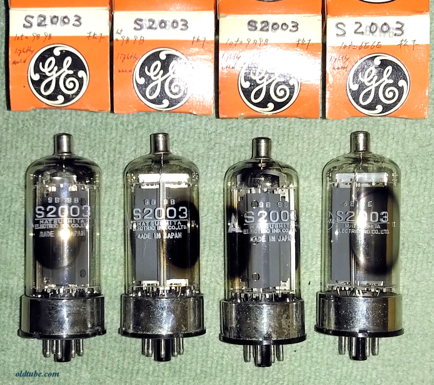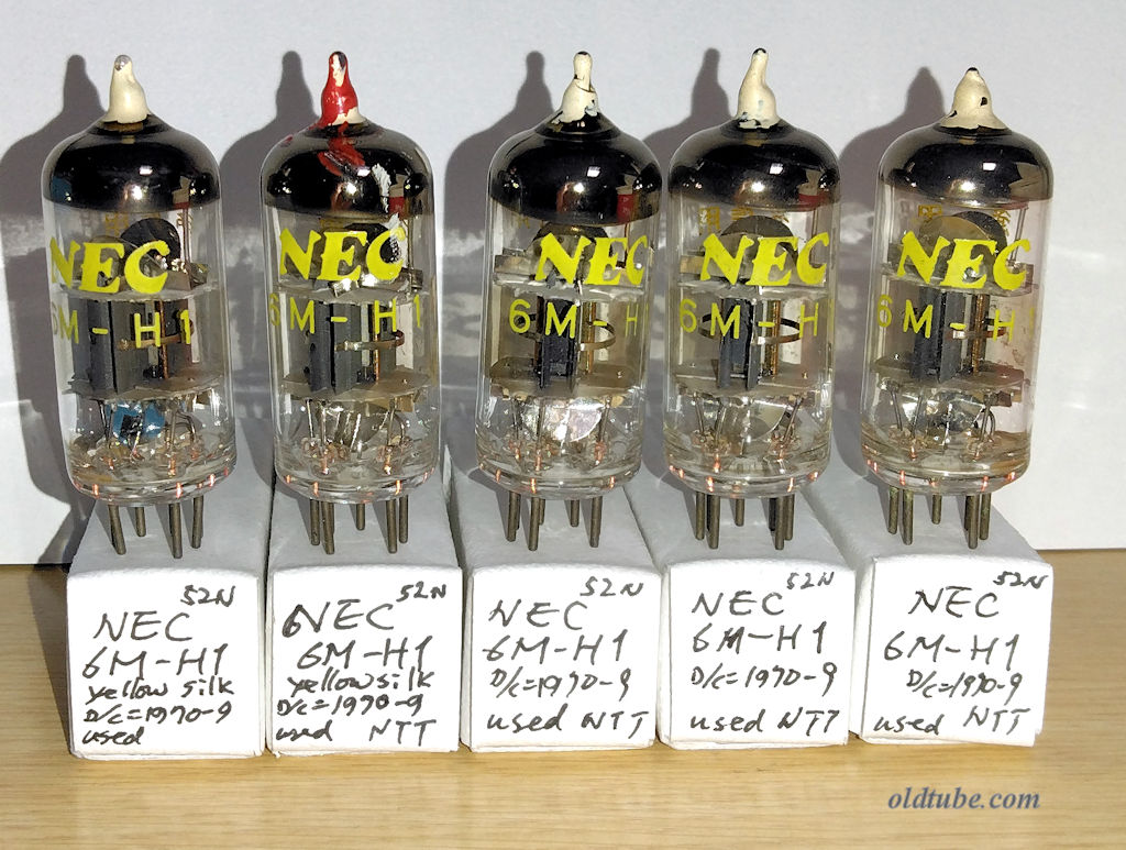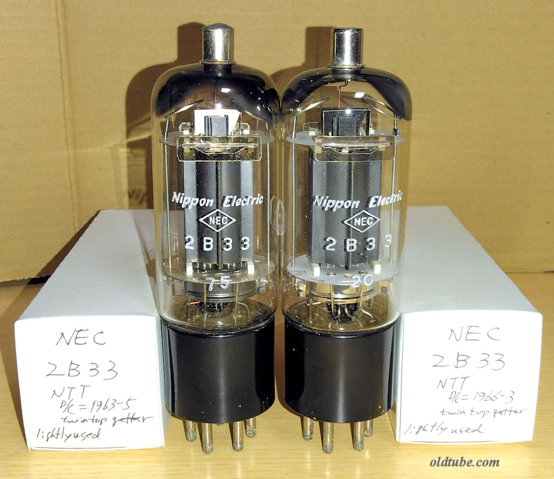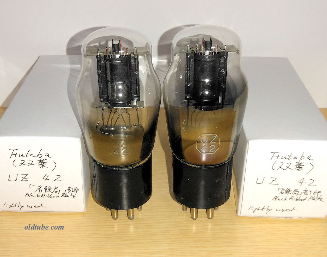 01A/201A/301A/501A =Detector Triode Amplifier = Ef/If=5V/0.25A Epmax=135V op :Ep=90V Ec=-4.5V Ip=2.5mA rp=11kΩ gm=725μmhos μ=8 op :Ep=135V Ec=-9V Ip=3mA rp=10kΩ gm=800μmhos μ=8 (参考 : Ep-Ip特性) also see similar types : DeForest DV2, DV5, NothernElectric R-221D/DX, Western Electric 235D 26) C-301A, CX-301-A-globe Cunningham ¥offer NIB * 6pcs=C-301A : ShortPins/Brass-base, 1pc=C-301A : ShortPins/BlackMoldBase w/original solid boxes * 17pcs=CX-301A : later-long-pins/Mold-base w/original solid boxes * 2pcs = CX-301A :later-long-pins BlackMold-base with very-ragged original boxes 0) C-301A-globe Cunnghm ¥- used gm=24,24/18min ShortPins 0) C-301A-globe Cunningham ¥- used BrassBase 690μmho(Ec=-13V) ShortPins 1) C-301A-globe Cunningham ¥6900 used BrassBase 530μmho(Ec=-13V) ShortPins 2) C-301A-globe Cunningham ¥7900 used BrassBase 24,30/18min(TV-7B/U) ShortPins 0) C-301A-globe Cunningham ¥7500 used BlackMoldBase 880μmho(Ec=-14V) ShortPins 1) C-301A-globe Cunningham ¥7300 used BlackMoldBase 790μmho(Ec=-13V) ShortPins 1) C-301A-globe Cunningham ¥7300 used BlackMoldBase 750μmho(Ec=-14V) ShortPins 1) C-301A-globe Cunningham ¥6800 used BlackMoldBase 30/18min ShortPins @@ 1) C-301A-globe Cunningham ¥5300 used BlackMoldBase 670μmho(Ec=-13V) ShortPins 1) C-301A-globe Cunningham ¥3900 used BlackMoldBase 510μmho(Ec=-13V) ShortPins 0) C-301A-globe Cunningham ¥1000 used BlackMoldBase SHORT[DISPLAY] Filaments=OK ShortPins 0) UV-201A-globe Radiotron ¥- used? BrassBase ShortPins(sQn) 0) UV-201A-globe Radiotron ¥- used BlkMoldBase ShortPins(qD) 1) UV-01A-globe GoldSeal ¥6000 used BlkMoldBase 27/18min ShortPins @@ 0) UV-201A-globe RCA Radiotron ¥- used BlkMoldBase ShortPins 850μmho(Ec=-13V) ChipInGlass 1) UV-201A-globe RCA Radiotron ¥7700 used BlkMoldBase ShortPins 1000μmho(Ec=-14V) 1) UV-201A-globe RCA Radiotron ¥7700 used BlkMoldBase ShortPins 940μmho(Ec=-14V) 1) UV-201A-globe RCA Radiotron ¥7700 used BlkMoldBase ShortPins 930μmho(Ec=-13V) 1) UV-201A-globe RCA Radiotron ¥6800 used BlkMoldBase ShortPins 700μmho(Ec=-14V) 1) UV-201A-globe RCA Radiotron ¥4200 used BlkMoldBase ShortPins 550μmho(Ec=-13V) 1) UV-201A-globe RCA Radiotron ¥6900 used BlkMoldBase ShortPins 770μmho(Ec=-13V) 1) UV-201A-globe RCA Radiotron ¥6900 used BlkMoldBase ShortPins 770μmho(Ec=-13V) 1) UV-201A-globe RCA Radiotron ¥6900 used BlkMoldBase ShortPins 770μmho(Ec=-13V) 1) UV-201A-globe RCA Radiotron ¥6700 used BlkMoldBase ShortPins 720μmho(Ec=-13V) 0) UV-201-globe Radiotron ¥- used BrassBase ShortPins [DISPLAY] 0) UV-201-globe Radiotron ¥- used BrassBase VeryLowEmission ShortPins[DISPLAY] 1) UV-201A-globe ? ¥2000 used BrassBase ShortPins [DISPLAY] 0) UV-201-globe Radiotron ¥- used BlkMoldBase ShortPins[DISPLAY]@@ 1) UV-201-globe Stewart Werner ¥1500 used BlkMoldBase GoldPaintEngravedLogo ShortPins[DISPLAY]@@ 2) UV-201A-globe Ureco ¥1500 used BlkMoldBase ShortPins[DISPLAY]@@ 0) UV-201A-globe Radiotron ¥- used BlkMoldBase ShortPins[DISPLAY] 1) D-01A DeForest ¥12000 used UX-IsolantiteBase TippedTop gm=500umhp(Ec=-13V) 1) A-201 Volutron ¥12000 used UV-BrassBase RoundTopStraightGlass ShortPins gm=700umhp(Ec=-13V) 1) A-201 Volutron ¥12000 used UV-BrassBase RoundTopStraightGlass ShortPins gm=670umhp(Ec=-13V) 1) A-201 Volutron ¥11000 used UV-BrassBase RoundTopStraightGlass ShortPins gm=560umhp(Ec=-13V) 1) X-201A-globe Vesta ¥5000 used VeryThickMoldBase LongPins 740μmho(Ec=-13V) 1) UV-201A-globe ? ¥6300 used ThickReddishBrownMoldBase ShortPins 900μmho(Ec=-14V) Perryman RH201A箱 0) CX-301A Cunnghm ¥- NIB ragged-boxes (quad) 0) CX-301A-globe Cunnghm ¥- NIB(T) 1) CX-301A-globe Cunnghm ¥3800 used 800μmho(Ec=-13V) 1) CX-301A-globe Cunnghm ¥3500 used 740μmho(Ec=-13V) 1) CX-301A-globe Cunnghm ¥3200 used 710μmho(Ec=-13V) 1) CX-301A-globe Cunnghm ¥3200 used 700μmho(Ec=-13V) 1) CX-301A-globe Cunnghm ¥3100 used 670μmho(Ec=-13V) glassが白澄んでいる 0) CX-301A Cunnghm ¥- used(hhz2v4gy) 1) CX-301A-globe Cunnghm ¥3100 used 32/18min glassがベースに対してやや斜めになっている。 1) CX-301A-globe Cunnghm ¥2900 used 28/18min glassが白澄んでいる。 1) CX-301A-globe Cunnghm ¥2100 used 22/18min 1) CX-301A-globe Cunnghm ¥2100 used 20/18min @@ 0) UX-201A-globe RCA ¥- NOS? STRONG Perryman RH201A箱(sT) 0) UX-201A-globe RCA ¥- used(hhz1v5gy) 0) UX-201A-globe RCA-Radiotron ¥3800 used gm=920μmho(Ec=-13V) TallBase 1) UX-201A-globe RCA-Radiotron ¥3100 used gm=730μmho(Ec=-13V) 1) UX-201A-globe RCA ¥2100 used gm=20(TV-7) 0) SX-201A-globe Syl ¥- used? 0) 501A DeForest ¥- used 32,33/18min(D) 1) 401A DeForest ¥5300 NIB 26/18min VeryRaggedBox 1) 401A DeForest ¥5300 NOS? 34/18min 1) 401A DeForest ¥4600 NOS? 28/18min 1) 501A DeForest ¥4600 used 28/18min 1) UX-201A-globe KenRad ¥2000 used gm=470μmho(Ec=-13V) 1) 201A-globe DIATRON ¥3500 used gm=32/18min 1) 201A-globe Powertone ¥3300 used gm=730μmho(Ec=-13V) 1) UX-201A-globe WORD? ¥3300 used gm=740μmho(Ec=-14V) 0) 01A-globe ByHeck ¥2800 used gm=630μmho(Ec=-13V) 0) 201A-21x-globe Silvertone ¥3500 used gm=30/18min 1) UX-201A-globe Neutron ¥2500 used gm=800μmho/475min(on KS-15750-L1) 1) UX-201A-globe BESTO ¥2500 used gm=775μmho/475min(on KS-15750-L1) 1) ER201A-globe EvereadyRaytheon ¥3800 used gm=740μmho(Ec=-13V) engraved 1) ER201A-globe EvereadyRaytheon ¥3800 used gm=690μmho(Ec=-13V) engraved 1) 01A Ray ¥7900 LikeNew 4-pillar ST gm=820μmho(Ec=-13V) 1) 01A-ST RCA ¥4700 NIB 1) 01A-ST Silvertone ¥4300 NIB 1) 01A-ST Silvertone ¥4,300 NIB 5) 01A-ST Meteor ¥4300 NIB RaggedBox 1) 01A-ST Wards ¥4300 NIB RaggedBox 1) 01A-ST GE ¥2700 used gm=775μmho(Ec=-13V) 1) 01A-ST Panama ¥2700 used engraved gm=730/μmho(Ec=-13V)