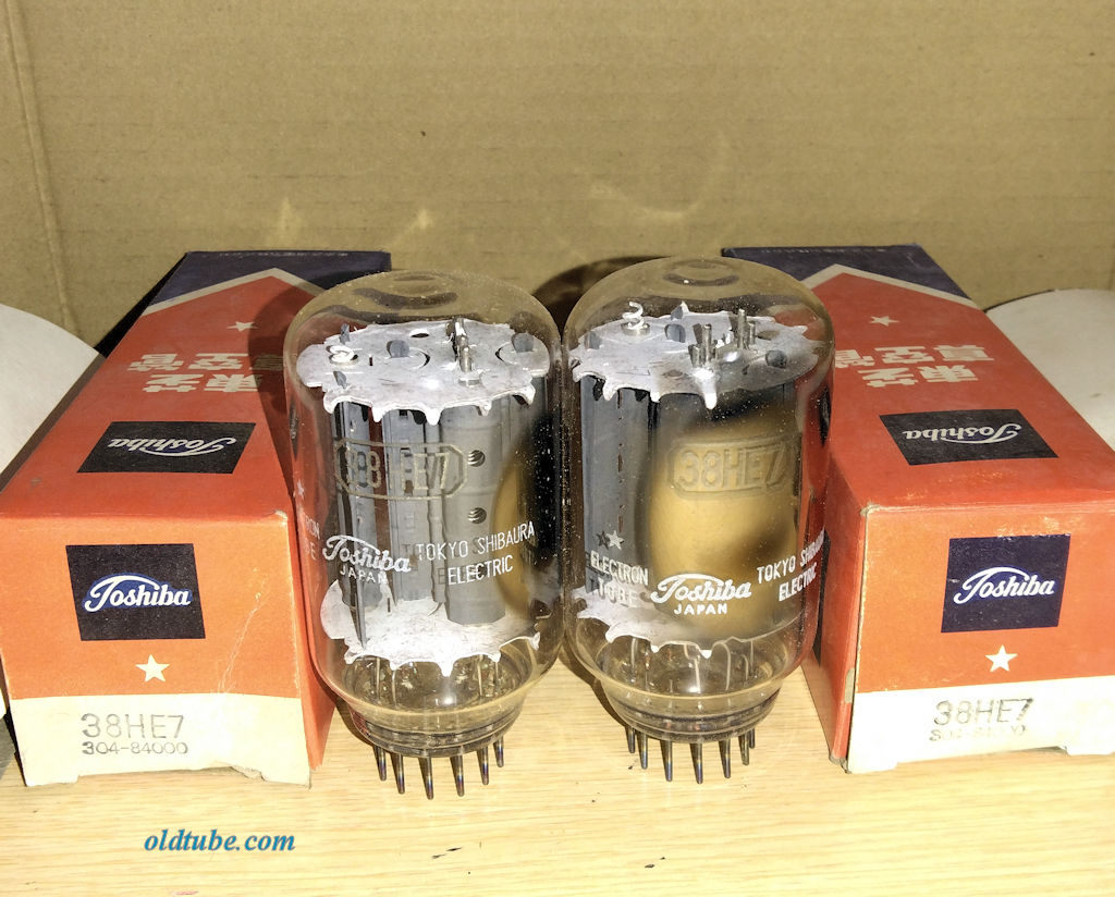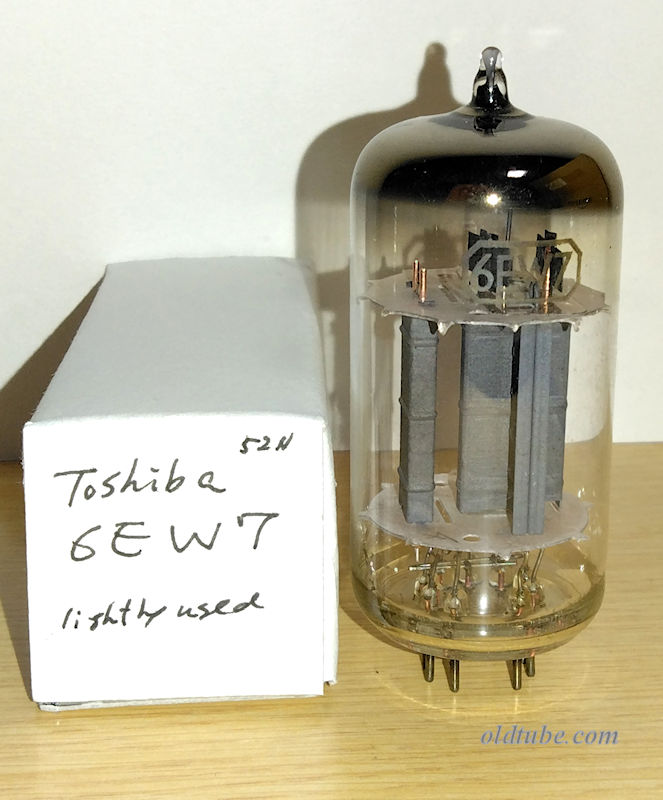 UCL81 =common Cathode Triode Power-Pentode= (noval) Eh/Ih=39V/0.1A Ehk=220V (Triode) Ppmax=1W Epmax=250V/550V-cutoff Ikmax=8mA Rgmax=1.5MΩ op : Ep=150V Ec=-1.9V Ip=1.3mA gm=1.6mS μ=56 (Pentode) Ppmax=6.5W Epmax=250V/550V-cutoff Pc2max=1.5W Ec2max=250V Ikmax=45mA Rg1max=1.2MΩ op : Ep~200V Ec2=200V Ec1=-7V Ip=30mA Ic2=1.8mA gm=8.75mS rp=22kΩ Zl=7kΩ Po=2.4W D=10% pins : 1(Gt)-2(G2p)-3(common-KG3p)-4(H)-5(H)-6(Pp)-7(Pt)-8(common-KG3p)-9(G1p) heater variant : PCL81(12.6V/0.3A) 3) UCL81 TFK ¥2000 NOS?/lightly-used <> on bottom