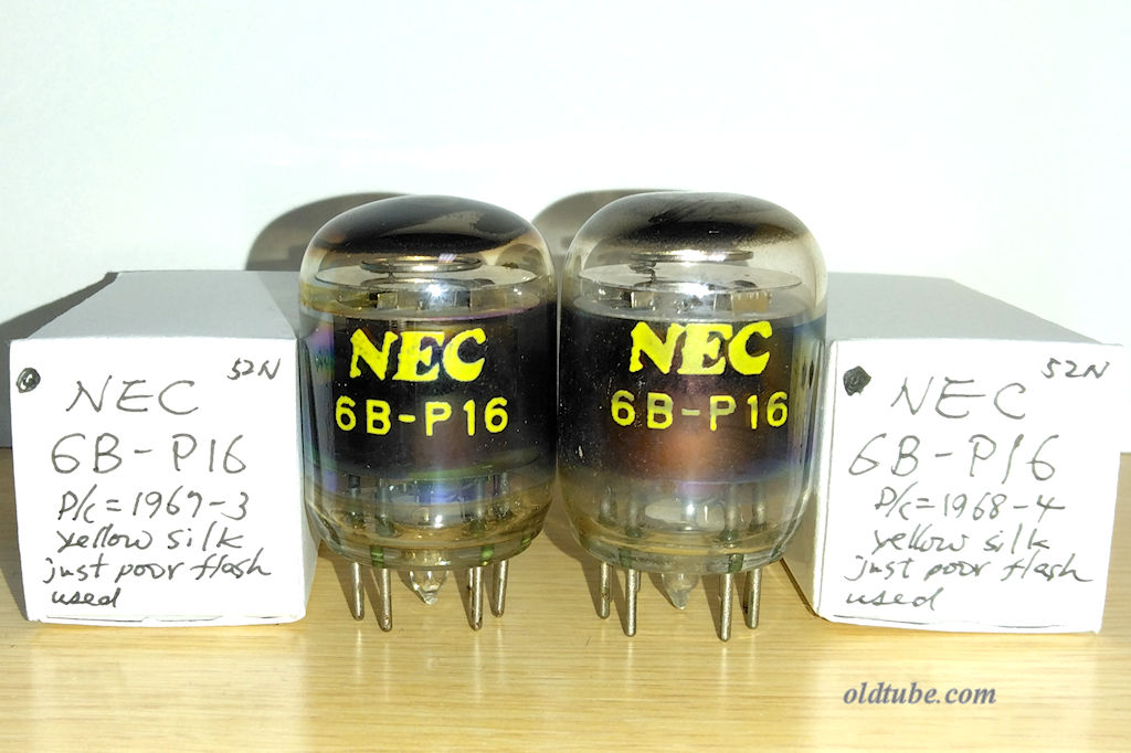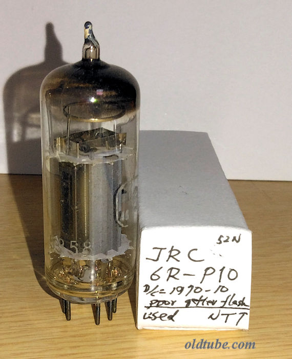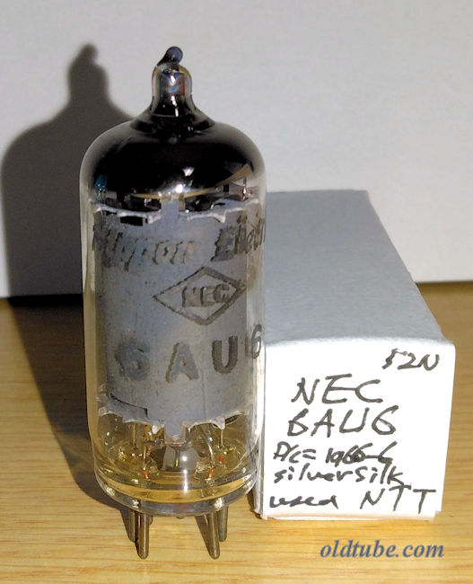 1J6G/GT =Filamentary Twin-Triode Power= (EIA/7AB - ST12(G),T9(GT)) 1G6G/GTのハイパワ版(同一ピン配列) Ef/If=2VDC/0.24A(direct heat) Epmax=135V Ip-peak=50mA op B2pp : Ep=135V Ec=-6V Ipo=0.2mA Ipmax=24mA Zlpp=10kΩ Pin=110mW Po=1.6W D=3% op AB2pp: Ep=135V Ec=0.0V Ipo=10mA Ipmax=30mA Zlpp=10kΩ Pin=170mW Po=2.2W D=10% 1) 1J6G RCA ¥1500 NIB VeryRaggedBox +++ 1) 1J6G Ray ¥1200 NIB VeryRaggedBox +++ 1) 1J6G Tsol ¥1200 NIB 2) 1J6G Syl ¥1200 NIB very-ragged boxes (hyf55nu) 2) 1J6G Syl ¥600 used 1) 1J6GT Syl ¥1100 NIB
