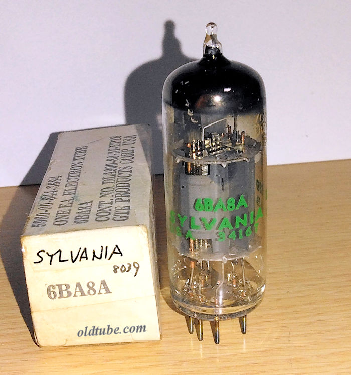 VT-48(see 41) =power pentode= (EIA/6B - UZ 6pin) Eh/Ih=6.3V/0.4A Ppmax=8.5W Epmax=315V Pc2max=2.8W Ec2max=285V Ec1max=+0V Ehkmax=90V VT-48 = Military type of #41 electrically identical with 6K6GT(octal), 7B5(loktal). 6) VT-48/#41 Sylvania ¥1700 NIB MB ST very-ragged boxes, Top View 1) VT-48/#41 Sylvania ¥1900 lightly-used WB