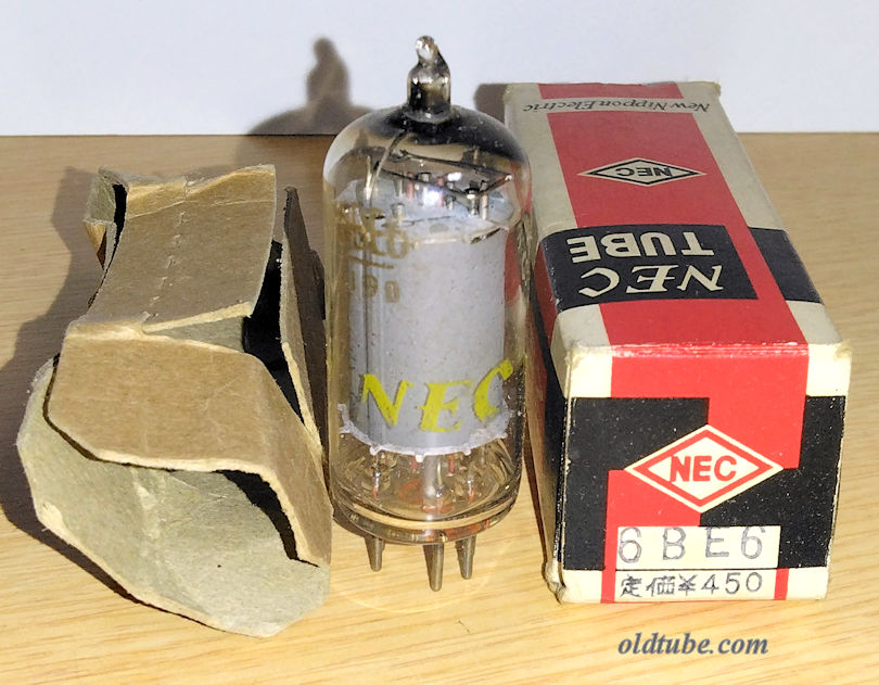 1AB6(=DK96) =filamentary Pentagrid Converter= (EIA/7DH - miniature) Ef/If=1.4V/0.025A Rg3max=3MΩ Rg1max=100kΩ Ppmax=0.15W Epmax=90V Pc4max=0.03W Ec4max=90V Pc2max=0.1W Ec2max=60V Ikmax=2.6mA op: Ep=64V Ec4=64V Ec3=0V Ec2=35V Ic2=1.7mA gm21=0.6mS μg2g1=7.5 pins: 1(F-)-2(P)-3(G2)-4(G1)-5(G4)-6(G3)-7(F+,G5) 2) 1AB6/DK96 Matsushita ¥500 lightly-used WB